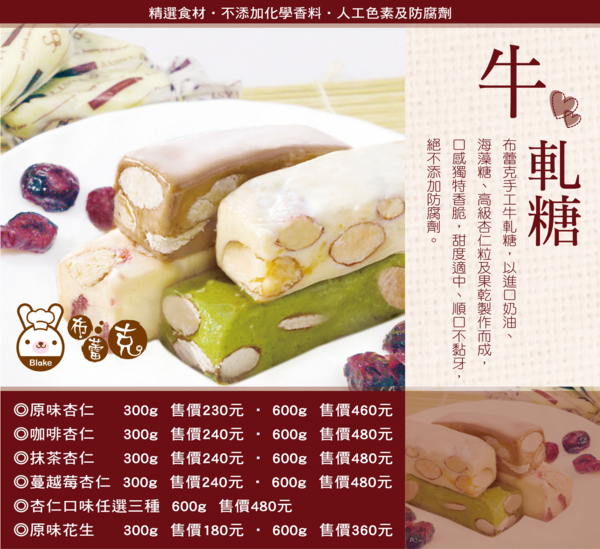 ◎牛軋糖最佳品嚐期限 : 常溫45天,冷藏90天,開封後請儘速食用。