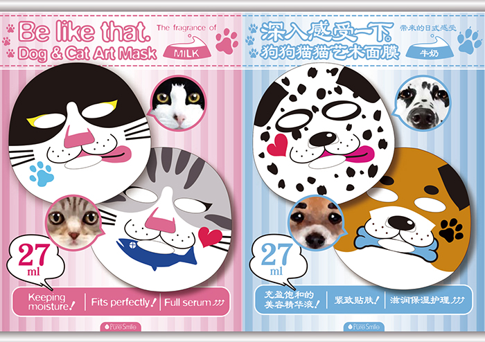可愛的動物面膜讓你不只是單單的膚面膜還能享受COSPLAY成可愛的小貓小狗。