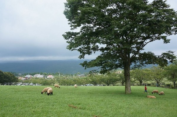 在山麓草原上的高千穗牧場,不僅能眺望櫻島,還能欣賞天空草原間自然融合的漸層景致~