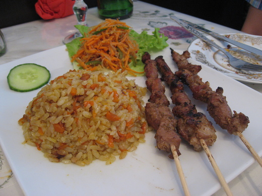 該店標榜的招牌手抓飯及烤羊肉串也無甚驚人之處,