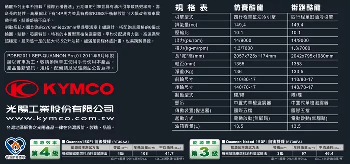 運動手環光陽機車 酷龍 150 街跑 KYMCO Quannon 2017全新車 (白)特色