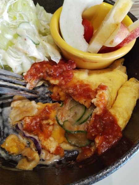 在吃了半個歐姆蛋的途中慢慢的有點對味道感到習慣的途中