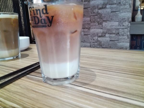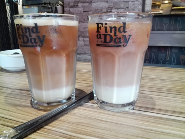 我的是右邊的英式奶茶左邊的是朋友的港式鴛鴦,有完美的漸層,漂亮八!