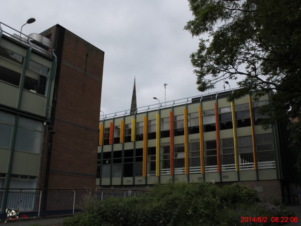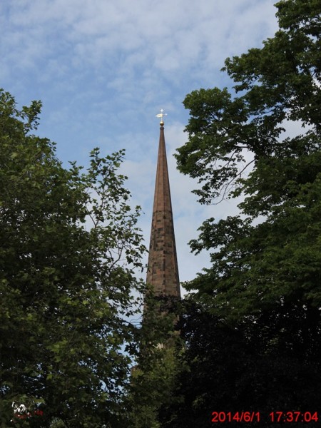 從火車站穿過Circle Road走進市中心,遠遠三座高聳的尖塔就是Coventry的地標。沿著Warwick Road往市心,左手邊是一座有著三個拱形、大門上一座金色十字架的URC Church(United Reformed Church,英國聯合歸正教會)。往右前方望去,不遠處New Union St.旁的第一座尖塔,想來應該也是一座教堂吧!