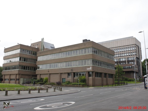 跟隨著前方突出天際的尖塔前進,幾棟殘存的都鐸式建築訴說著當年的滄桑。接著就是座高聳的尖塔,整座教堂就只剩下鐘塔是完整的。轟炸摧毀了雄偉的大教堂,殘跡與對面新建的大教堂形成不怎麼協調的對比。與大教堂隔著馬路的Coventry University則是曾經留下另一段記憶的地方。