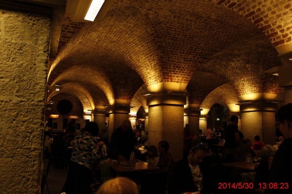 這裡叫作Cafe-in-the-Crypt,這是什麼意思?可以叫作地窖咖啡廳,但也可以叫作墓穴咖啡廳(直譯:在墓穴裡的咖啡廳)。一般人當然都管它叫地窖咖啡廳囉。