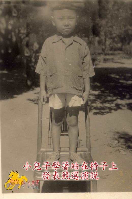 過了幾年後,小兒子大約讀小學二、三級,那時候正好有選舉活動進行,小兒子學著競選者站在樹樁上發表演說,一個不小心跌下樹樁,摔斷了手骨,所幸摔斷的部位是在手臂骨的中間,接好、打上石膏,兩個月後拆了石膏,過了一段時日就完全康復了,倒沒有像哥哥一樣受那麼多罪。