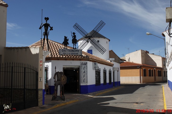 山下小鎮上的一家酒館就是我們用餐的地方。藍白相間的牆襯著有些古意的房舍。據說這裡也是唐吉珂德故事的場景之一。難道唐吉珂德就是在這裡強迫店主人扮作堡主,策封他為騎士的嗎?