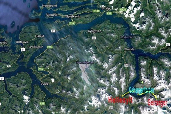 位在Geirangerfjord峽灣最西側的Hellesylt是一個挪威維京人最古老的港口,也是大約一萬年前冰河退縮後切割出來峽灣的終端之一。