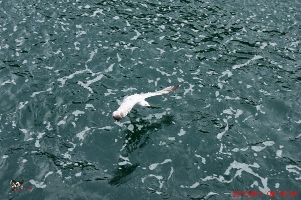 渡船離開碼頭,大夥兒就迫不急待的上到甲板。取出從早餐勻出來的麵包,興緻勃勃的餵起海鷗來。這海鷗也真是聰明,只咬走手上的麵包,卻不順勢咬一下手指頭加點兒葷,偶爾銳利的鳥喙碰觸到手指頭,也只是帶來一陣痛感,倒不曾有人見紅。
