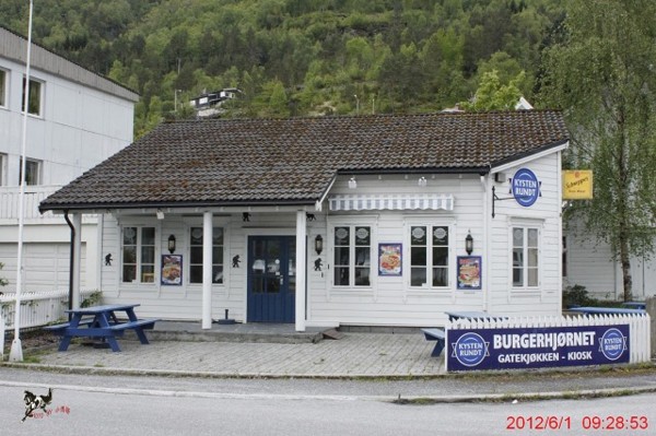 Hellesylt是一個不大的鄉村,過了窄橋有些店舖、住家,還有銀行,這裡只是我們搭乘Geirangerfjord峽灣渡輪繼續旅程的一小小逗點,所以不曾久留,上了車繼續我們的行程去也。
