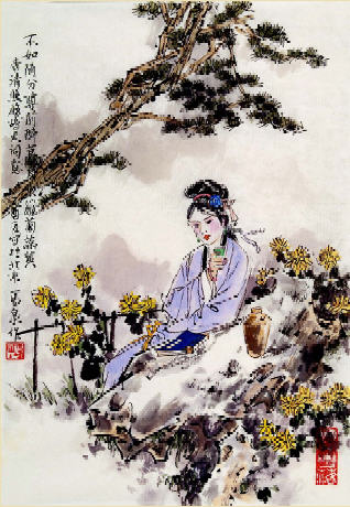 5. 東籬: 晉陶淵明<飲酒>詩之五:「採菊東籬下,悠然見南山。」後亦以東籬指菊花或菊圃。