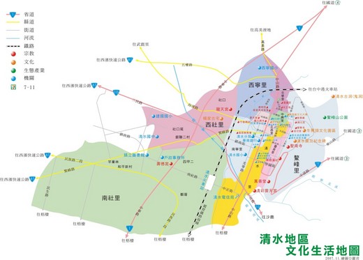 「這裡是二老大的家,我用紅筆圈起來。他家前面是仁愛路,在清水鎮算是比較大條的路之ㄧ。仁愛路旁是仁愛公園。好,大家先把這個位置搞清楚,等你們確定完全清楚我再繼續說下去。」