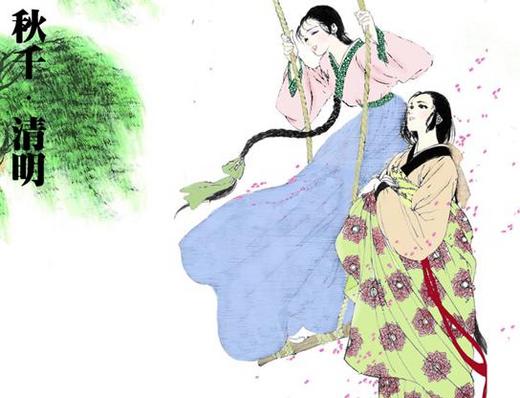 上片三句,第一句寫氛圍,第二句作烘染,第三句引出人物。「淡蕩春光寒食天」,清明前兩天是寒食節,「淡盪」二字,勾勒出麗日融合、晴風搖漾的春光。「玉爐沉水鳥殘煙」,玉爐中點燃沉香,氤氲繚繞,環境是如此幽雅,在這樣的描寫中引出人物:「夢回山枕隱花鈿」,只是一個滿頭花鈿的少婦,夢醒後凝神倚枕。這幾句,將一個春睡後兀自出神的少婦形象刻畫得形象而逼真。下片,又寫了幾層意思:「海燕未來人鬥草」,燕子尚未從海上飛來,女伴逢春鬥草,寫出了少婦在閨中的生活情景。接寫「江梅已過柳生綿」,江梅已經開過,柳旭也是滿天飛舞,不知飛向何處,暗指少婦無所寄託的愁怨。第三層:「黃昏疏雨濕秋千」。盪秋千,本是少女、少婦的遊戲,雨濕秋千,不能再玩,暗示了年華已逝、青春不再的無奈。此詞李清照明寫少婦閨情,實際上寄寓著自己的身世之慨,流露出歲月流逝,時局艱難,昔日的一切已成明日黃花的慨嘆。詞中的含義,值得品味。