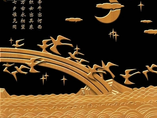 星橋由無數喜鵲搭橋,需要經過整整一年才能見一面,想來離情別恨難以窮盡。牽牛和織女,莫非正在離別中?故而此刻會一會兒晴,一會兒雨,突又一會兒風。