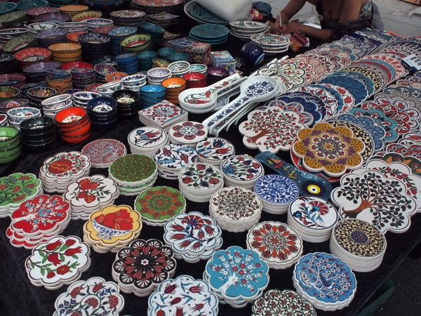 賣各種手工繪製的陶瓷碗盤和杯墊,很漂亮很有印度風。