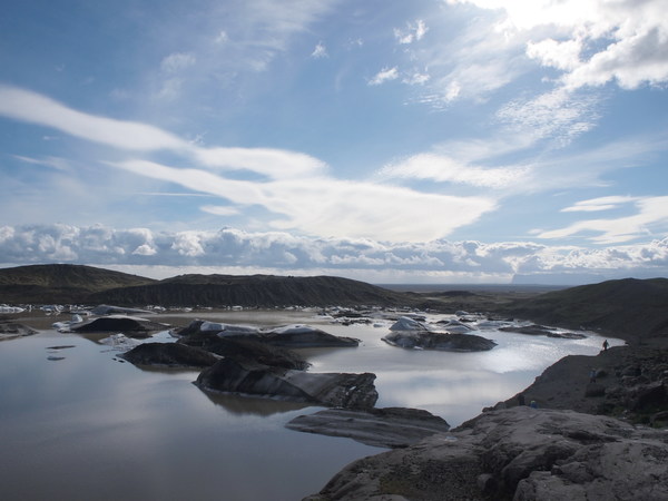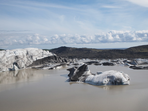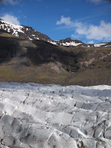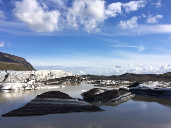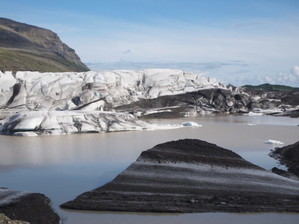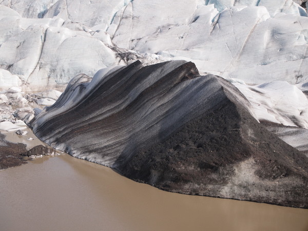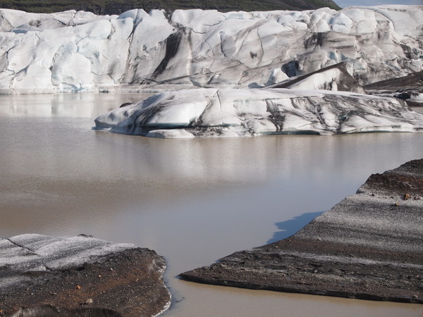 所以冰島的冰川們都覆上了一層火山灰,變得黑黑灰灰的。