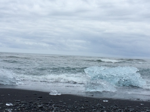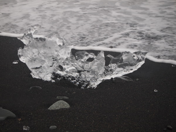 使得黑色沙灘上到處都散落著晶瑩澄透、恍若鑽石一般的冰塊……