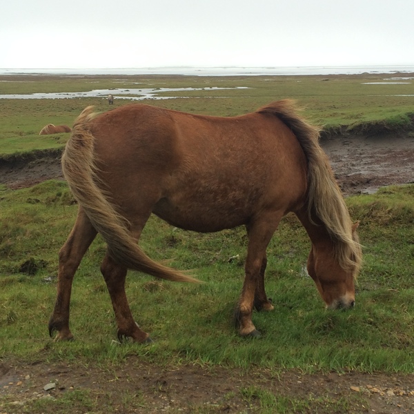我們發現原本在遠處吃草的小馬吃著吃著逐漸吃到路邊來了。