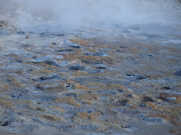 這是一個瀰漫著硫磺味(也就是臭雞蛋味)的地熱泥漿區,
