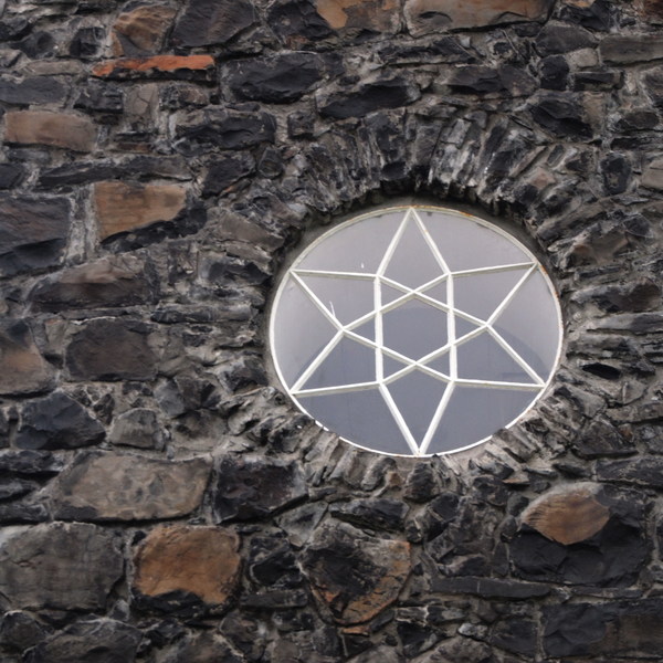 在教堂正面中央有一個玻璃圓窗,