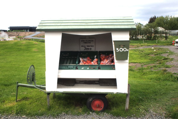 上頭販賣著溫泉蕃茄,一小包300克朗。