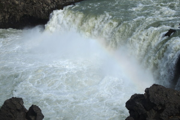 瀑布水從頂端直洩而下衝擊水面時非常有威力,