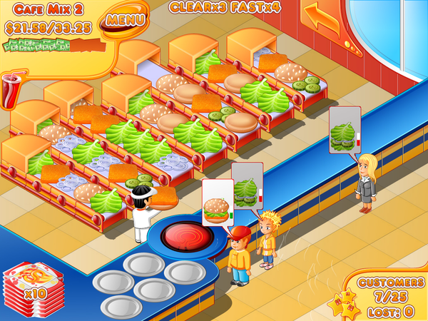 從下到上按照順序組合成顧客所點的漢堡才能夠出餐。