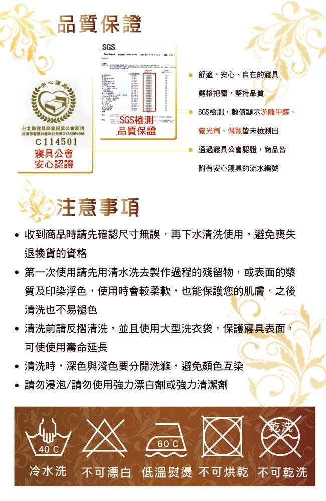 床包:6X6.2尺 (182X188 cm) x1 可包覆床高35±1cm