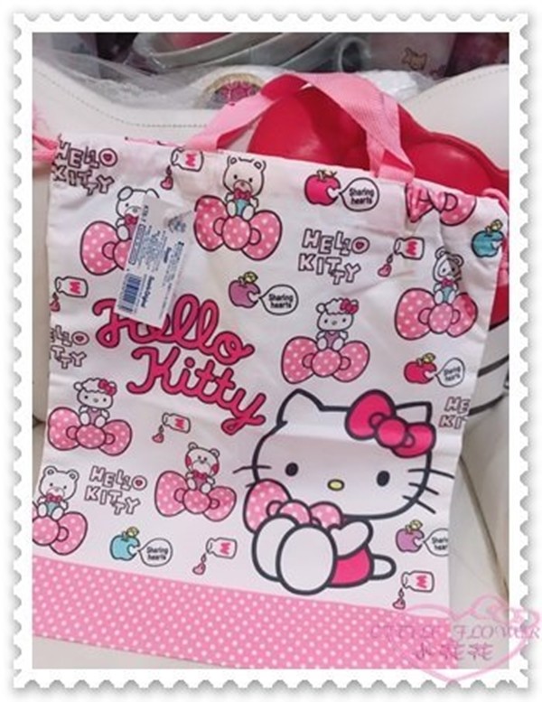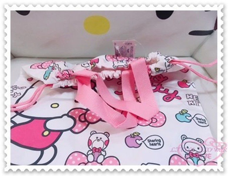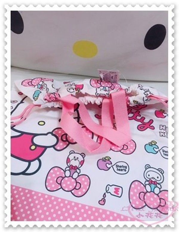 【開箱】小花花日本精品 束口袋 縮口袋 便當袋 手提袋 坐姿 小熊 點點 粉色 42215400