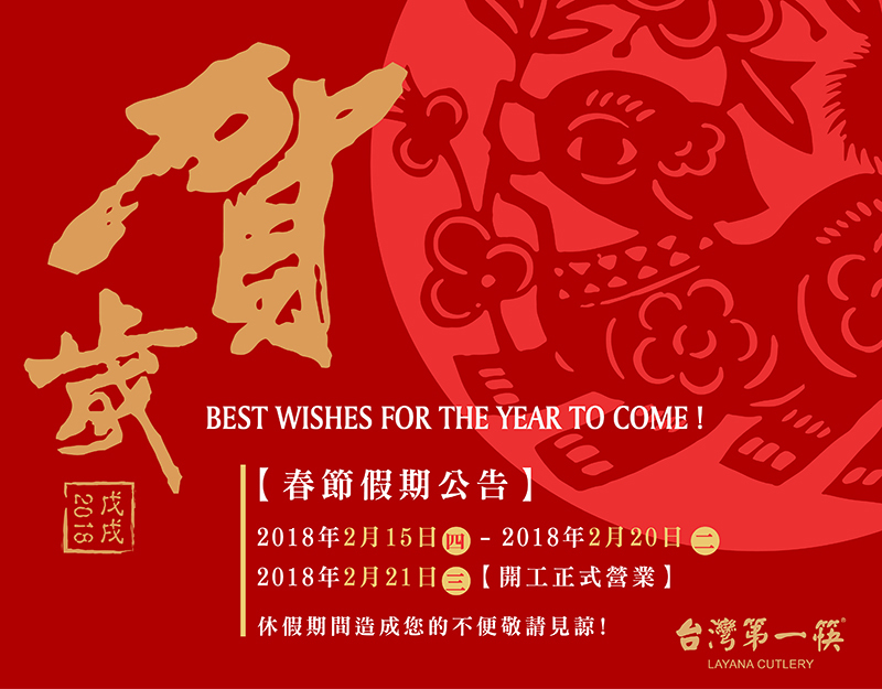 #台灣第一筷 祝大家 #新年快樂!自2/15(四)起至2/20(二)春節休假期間停止出貨。此段時間所有的訂單,將於2/21(三)陸續出貨。如有不便之處敬請見諒,祝大家 #和樂旺福,#萬事如意!