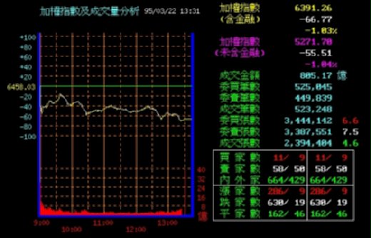 大盤:6391.26 -66.7 804.11億元;委買6.6 委賣7.5