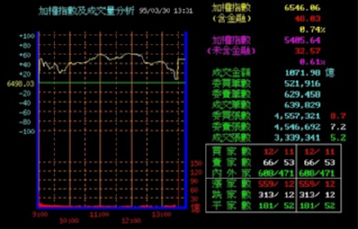 大盤:6546.06 +48.03 1071.98億元;委買8.7 委賣7.2,但委買筆數52.19萬筆,委賣有62.95萬筆,很明顯的散戶開始獲利了結,法人剛剛進場