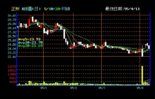 正新尾盤最後一筆交易,五分鐘內由小紅打到差點跌停(上圖)