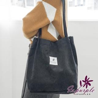 【iSPurple】質感燈芯絨*文青帆布大方單肩背包-黑CP值超高
