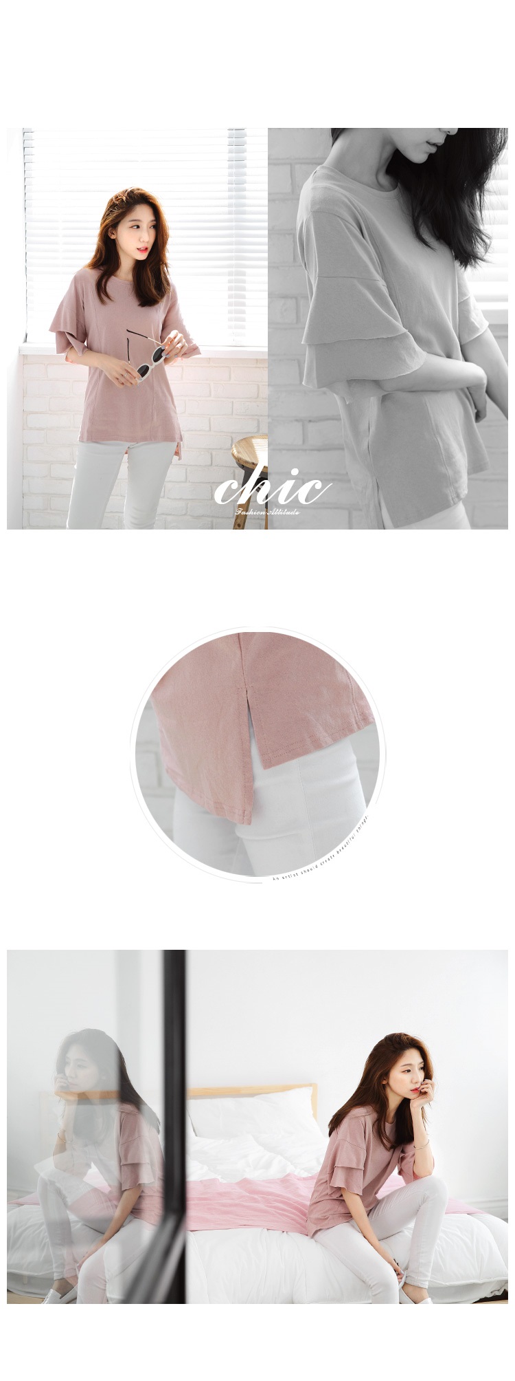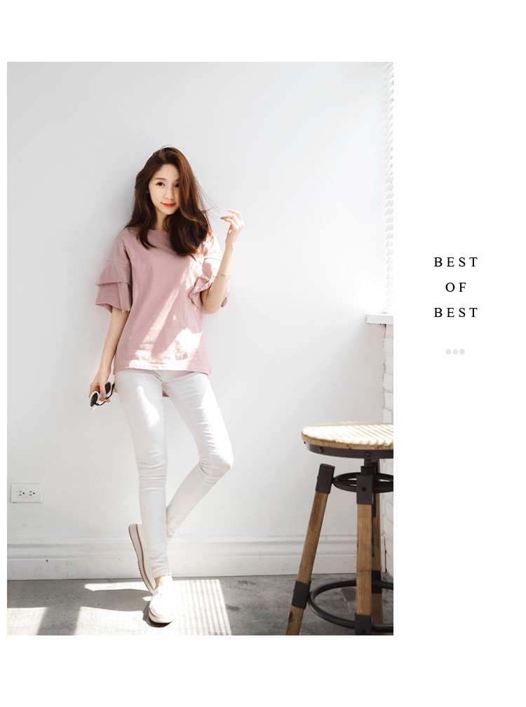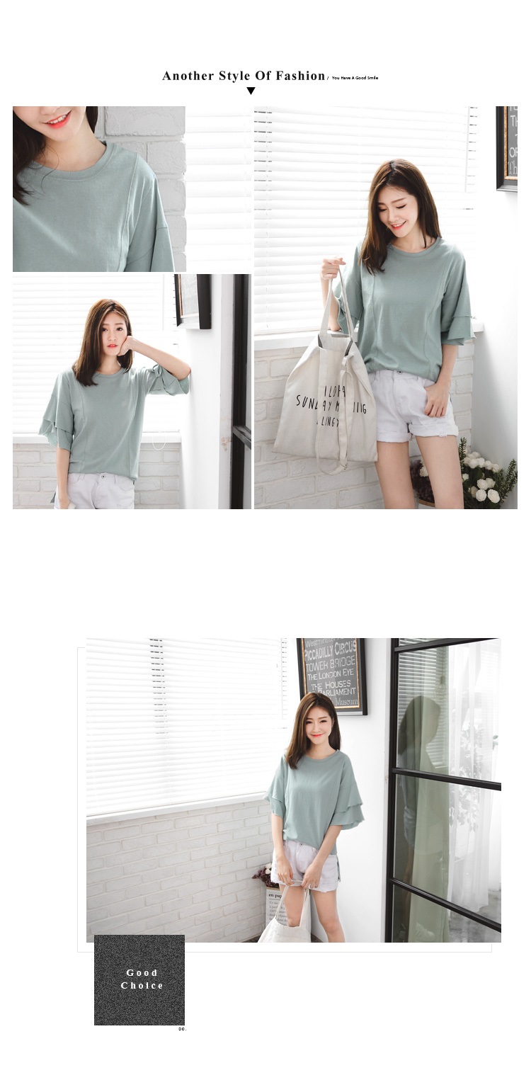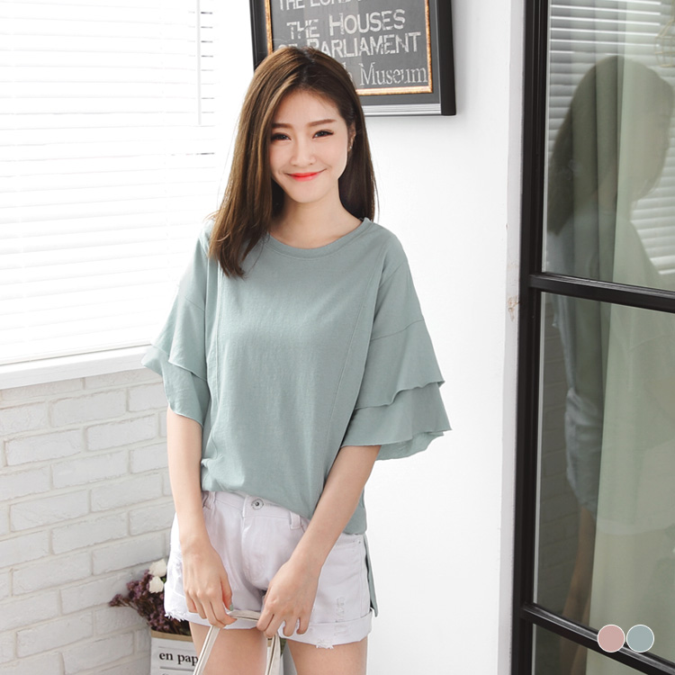 0622新品 素色層次喇叭袖造型棉感圓領上衣.2色