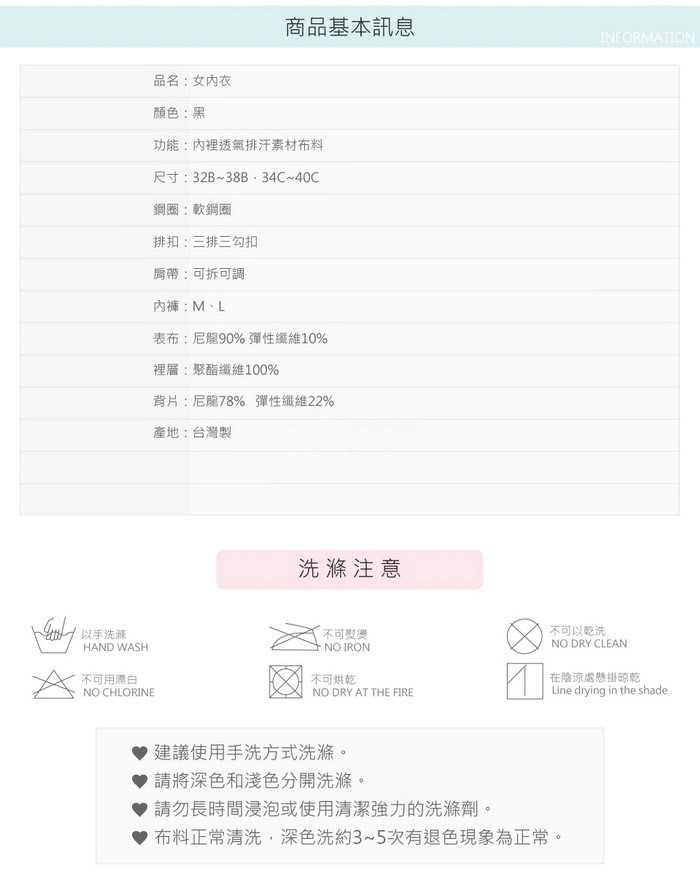 - 內容:女內衣