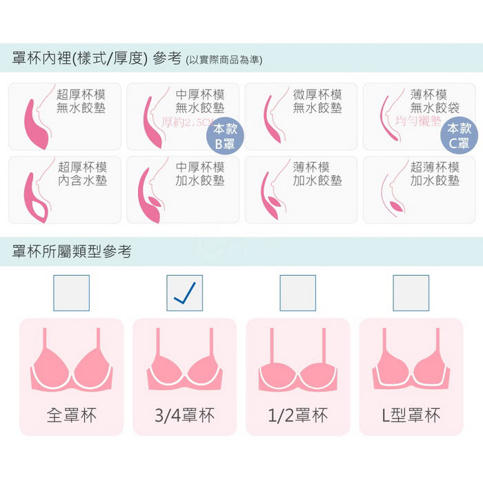B罩屬於下厚上薄款最厚約2.5CM