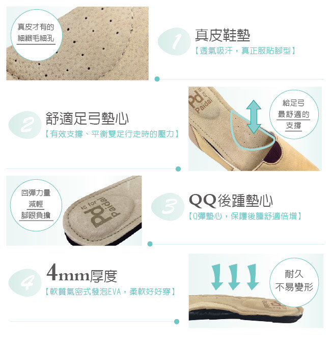 - ◎透氣真皮鞋墊、後踝枕不咬腳,舒適穿鞋體驗