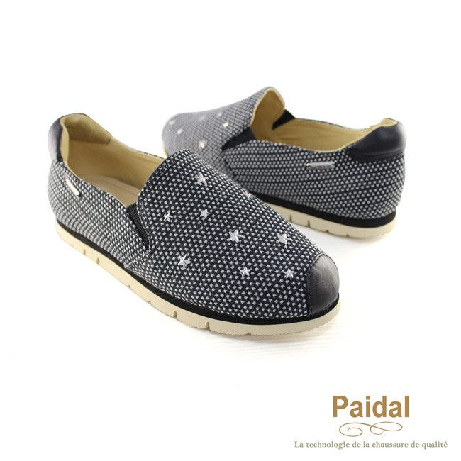 Paidal 海星鉚釘點繡紋休閒鞋樂福鞋懶人鞋-黑在網路上也是超多人推的