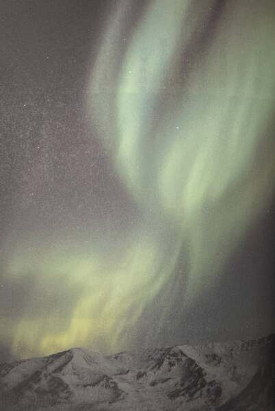 有一次,有麋鹿突然出現在冬季的阿拉斯加高速公路上,我為了閃避,連車帶人滑落到深雪中。那是個零下四十度的夜晚,天上有淡淡的極光舞動著。一部卡車停下來幫助我,司機弄得全身都沾滿了雪,一直說著:「我孩子要出生了。」他接到太太從費爾班克斯的醫院打來的電話,便在午夜的高速公路上一路飛奔而來。好不容易他幫我將車子拉上來,臉上充滿了愉悅,又繼續往費爾班克斯奔馳而去。在屬於自己的新生命即將誕生的這個夜晚,他應該從極光中看到了什麼吧。