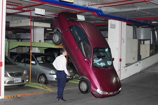 > 他要取車(停在立體車位的下方),在昇降機械車位時