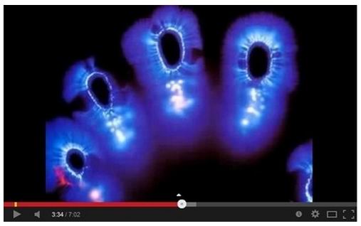 “量子的東西對物理、情緒、心理以及靈性的活動非常敏感,這就是為什麼GDV對一個有機體的不同機能很敏感。把指尖或植物擺在一個特別的光纖板上,相機就可以拍出環繞在指尖和植物周圍的高密度電子場。”他說。