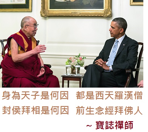 身為天子是何因,都是西天羅漢僧; 封侯拜相是何因,前生念經拜佛人;