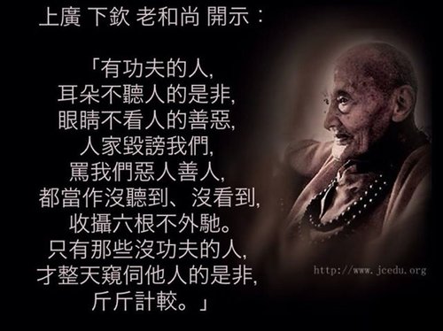 這一點就令我們感嘆,佛陀時代跟隨在佛身邊的出家人,即使最差的,也勝過佛滅度以後最有修行的修行人。由此也可以曉得,我們現在,處是五濁惡世,時是末法時代,以我們這種根機,與六群比丘當然絲毫不能比,而優波毱多已經是證果的阿羅漢,更不能比。可是如果往生極樂世界,在諸佛之王阿彌陀佛面前,在超越十方淨土的極樂淨土當中,怎麼不當下證入果位呢?優波毱多這個典故,我早年看過,給我的啟示很大。想到當時的出家人,不管證果沒證果,他們的威儀舉止是多麼安詳、平和,內心是多麼專注、寂靜。一個人的外貌是內心的顯現,從言語舉止可以看出他的內心境界。內心如果平和、寂靜、沒有雜念,他的舉止就比較安詳、溫和;如果言語舉止比較粗魯、躁動,就表示他內心是急躁、浮動的。所以,