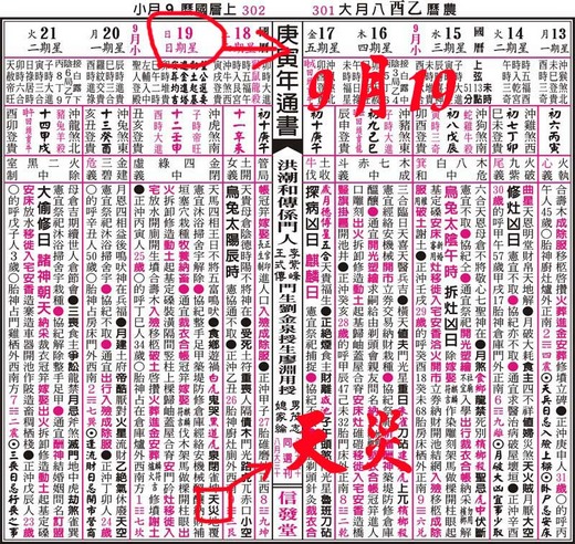 2010年通書早有記載今日(99)9/19有天災【圖示】