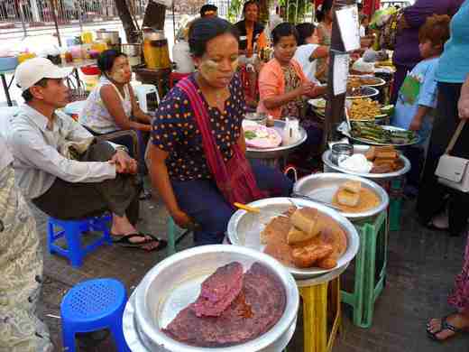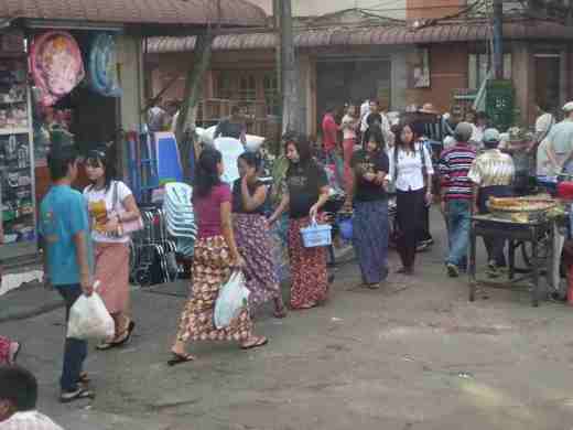 翁山市集是個大商圈, 人聲鼎沸熱鬧無比. 最特別的是, 有許多賣珠寶的商家集中在此, 其中不少華裔或是印度裔老闆. 因此要買珠寶, 講國語嘛也通喔。