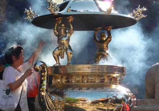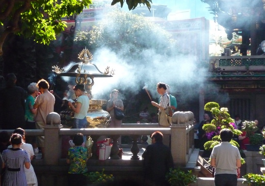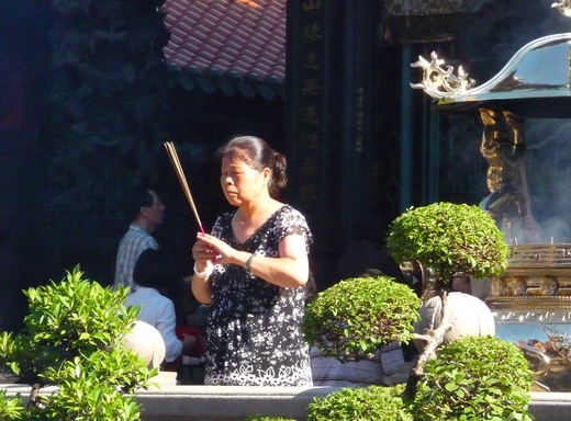 週日早晨約七點半到龍山寺參觀, 正逢善男信女做早課.
