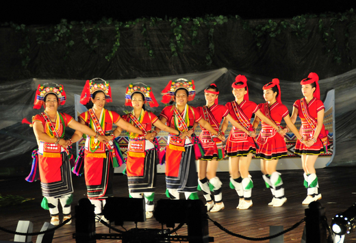 水舞結合了原住民的音樂、舞蹈,鯉魚潭的噴水,和煙火。相當精彩。