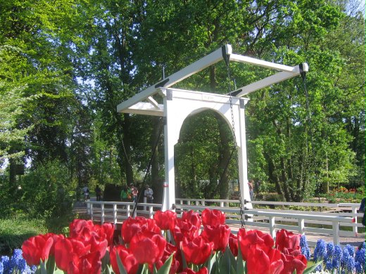 我是今年(2007)五月初去的,花園裡除了數不盡的各種各樣的鬱金香以外,其景觀特色,包括各種大樹、湖泊流水、人文藝術、建築景觀、座椅橋樑等,處處成景,都讓人看得目瞪口呆。我在西湖邊上看過中國人細心培育的西式花園景觀,當時就已經喜悅的啞口無言,只見小溪、岸邊草地與垂柳共織出來的生態景觀,大片草皮上的幾株大樹,人物雕刻的公共藝術,再加上西湖水色,搭配成景,渾然天成。